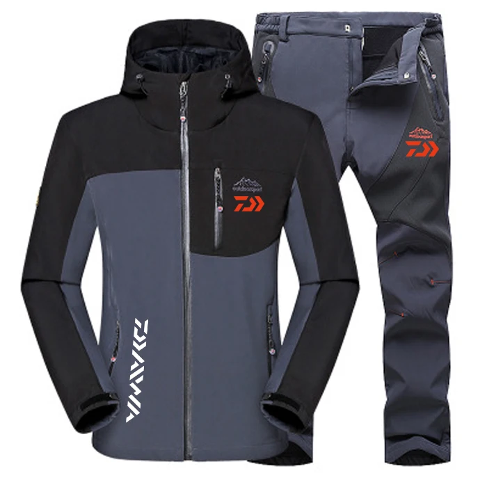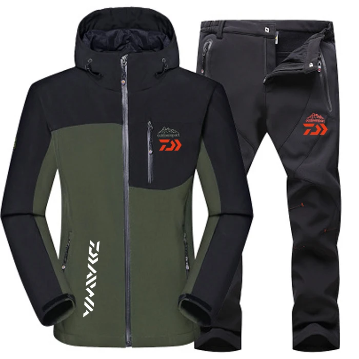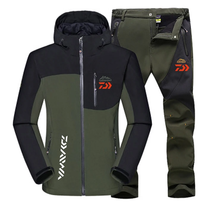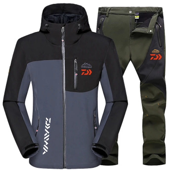 Мужские зимние водонепроницаемые комплекты одежды для рыбалки, теплые флисовые походные костюмы из софтшелла, уличная Треккинговая рыболовная куртка + брюки
