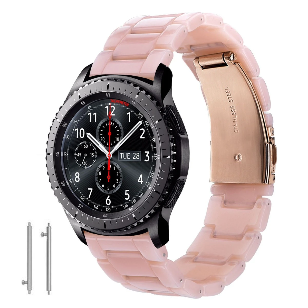 Превосходные материалы: В сочетании с розовым браслетом из смолы высшего качества и раскладной застежкой с двойной кнопкой безопасности. Предлагаем новый браслет к вашим часам GEAR S3. Легче, чем металлический ремешок из нержавеющей стали. Экстремальный светильник делает его более комфортным