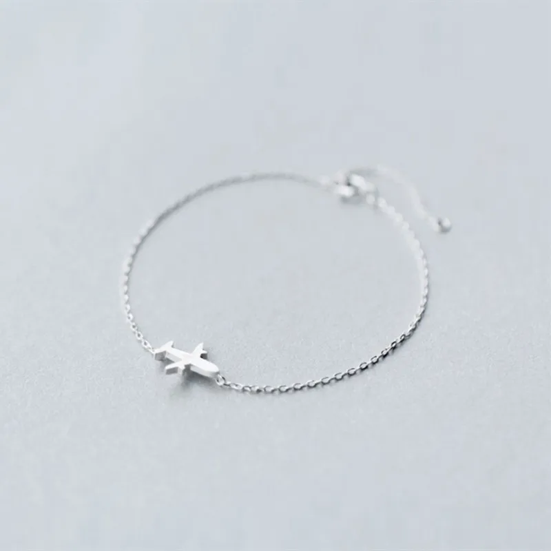 MKENDN Новое поступление из стерлингового серебра 925 пробы для путешествий по всему миру самолет Шарм Браслет Регулируемый для женщин украшения на авиационную тематику подарок