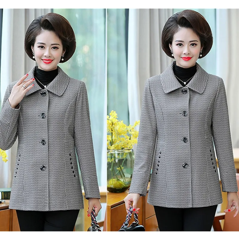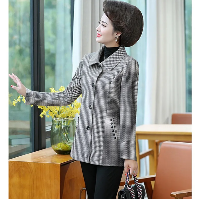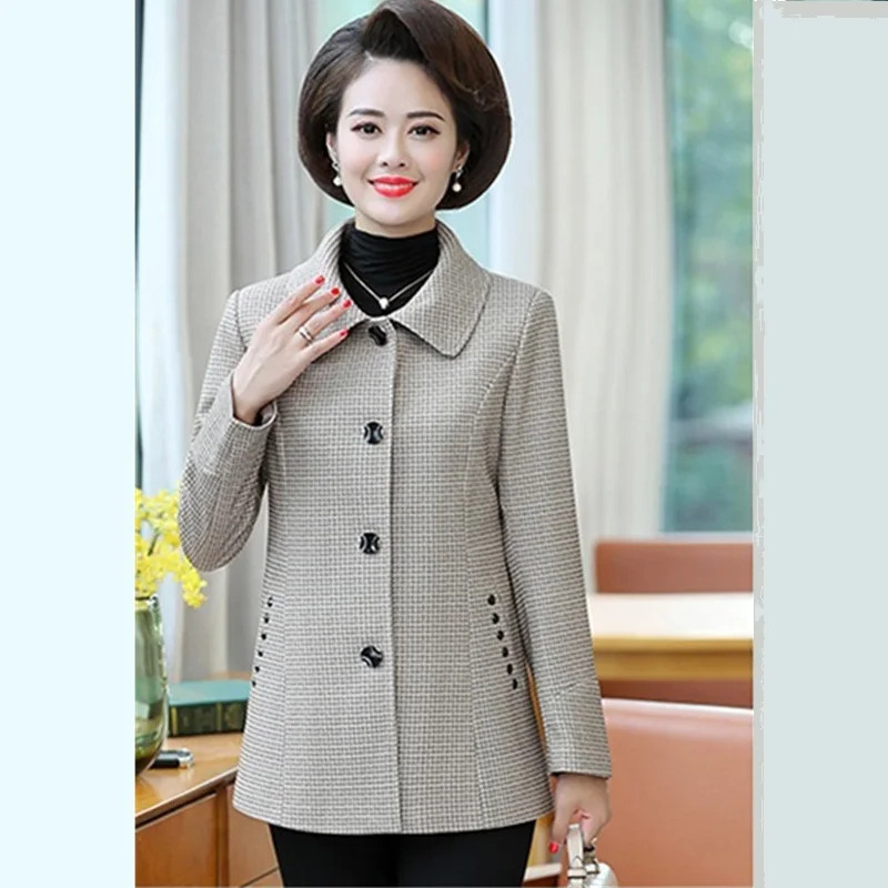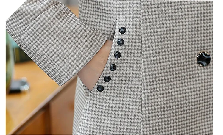 UHYTGF 5XL размера плюс куртки женские модные весенние шерстяные пальто в клетку с длинным рукавом Повседневные женские топы пальто casaco feminino 457