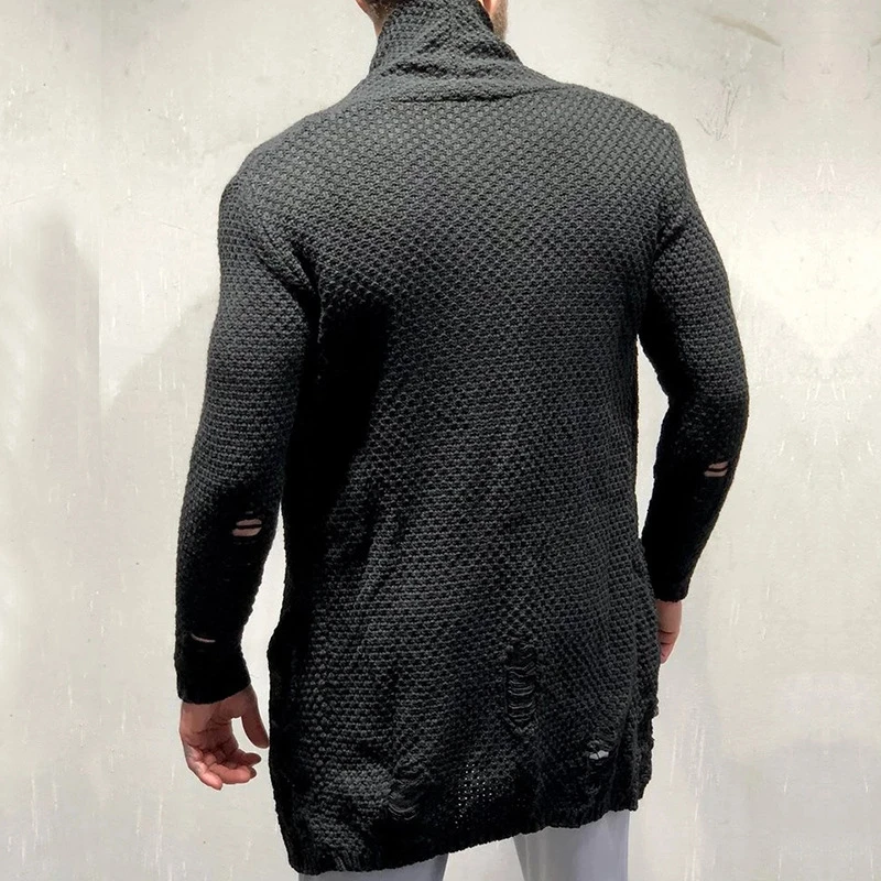 Мужской вязаный кардиган, длинный Приталенный кардиган в стиле Хай-стрит, однотонная верхняя одежда, 3XL, 2020