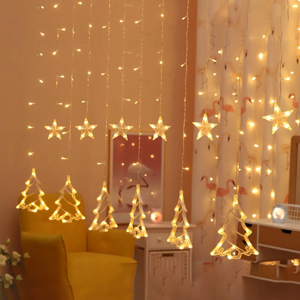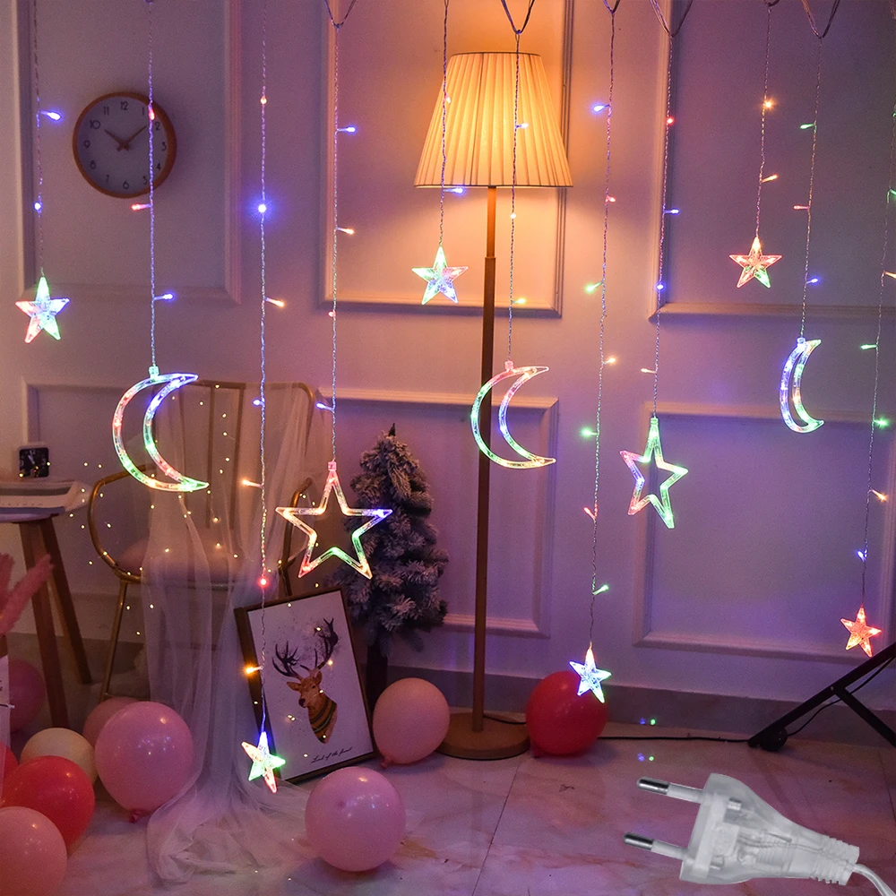 Гирлянда-занавес для рождественской елки, 220 В, со звездами и Луной