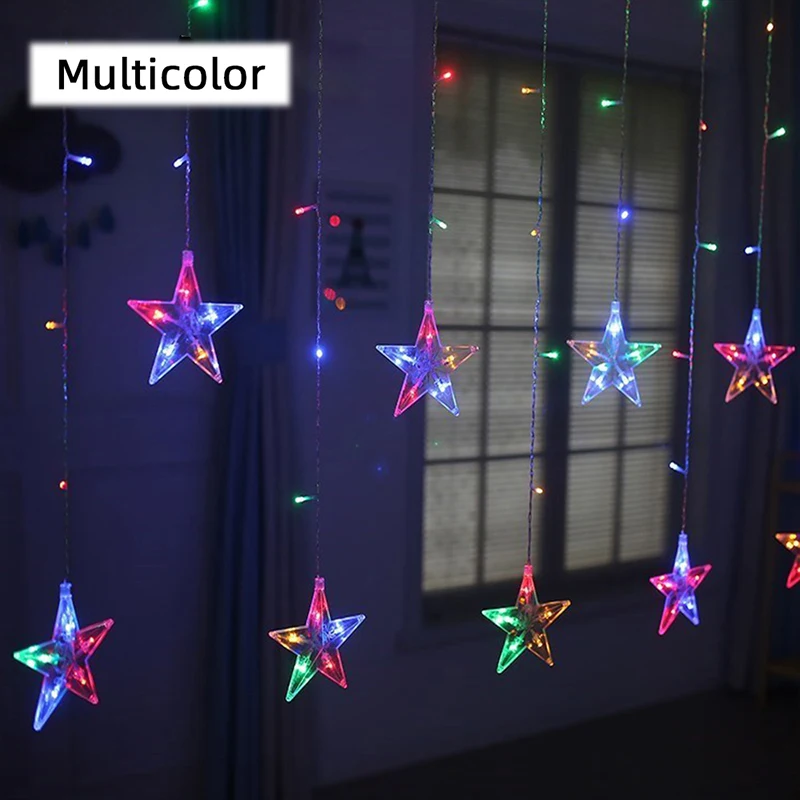 Стиль 6 звезд луна теплый белый занавес светильник