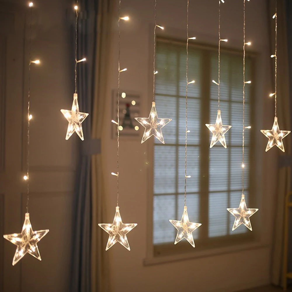 Стиль 8 маленькие звезды теплый белый занавес светильник