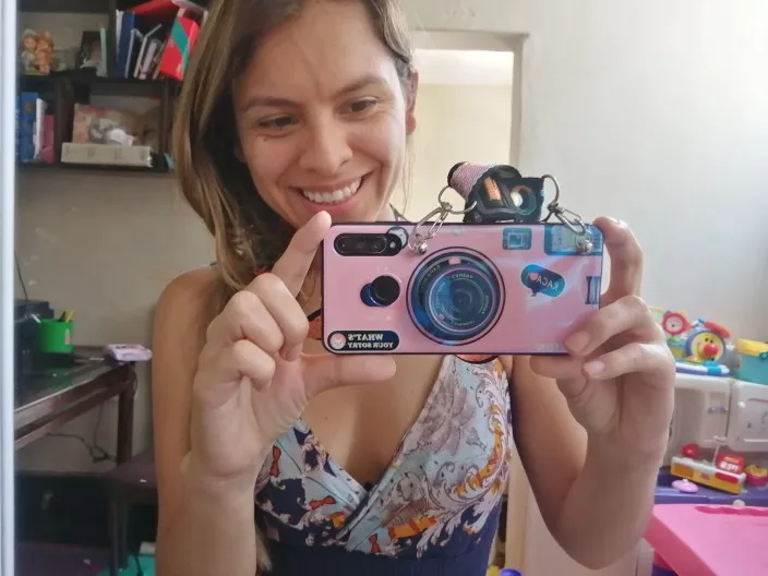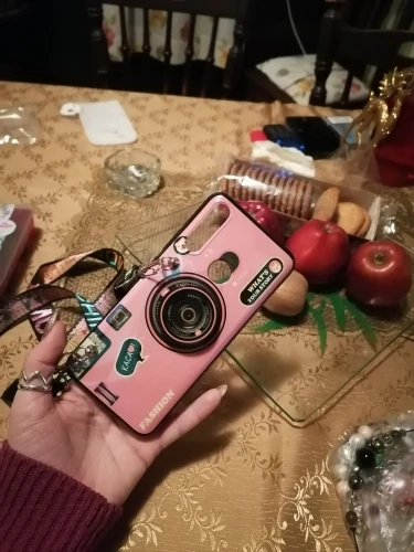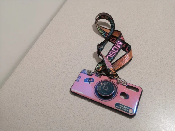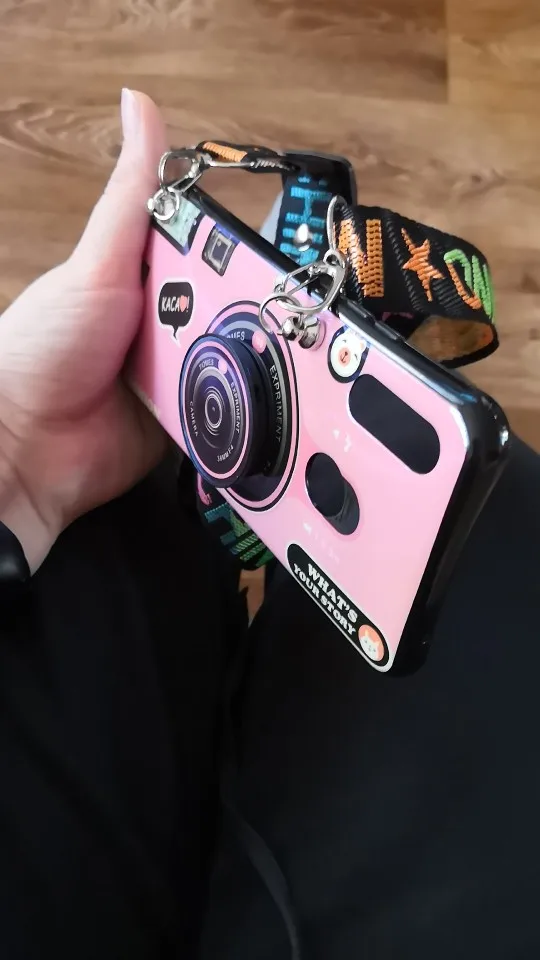 На данный момент все в порядке без каких-либо ударов. Продукт точно такой же, как и ваше описание, и истина, которая выглядит очень красиво. Выглядит как настоящая камера, когда вы носите ее вокруг шеи. И подвесная лента очень хорошо защищает ваш телефон от падения и поломки. Очень доволен покупкой.
