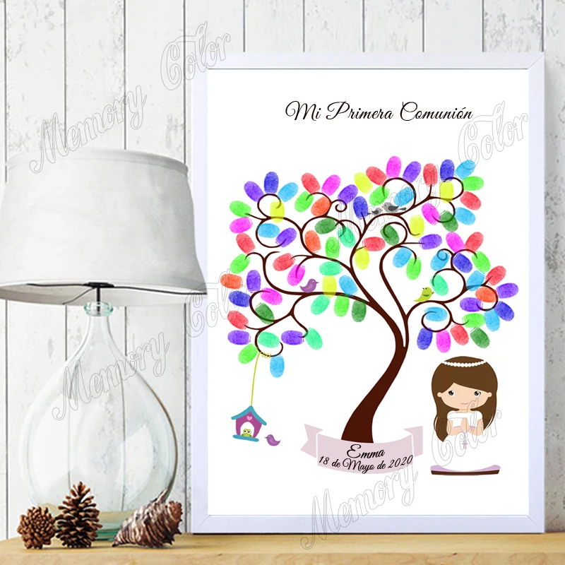 На заказ Тема имя Дата отпечаток пальца DIY холст Гостевая книга для детей крещение день рождения Святое Причастие сувенир (чернильная подушечка в комплекте)