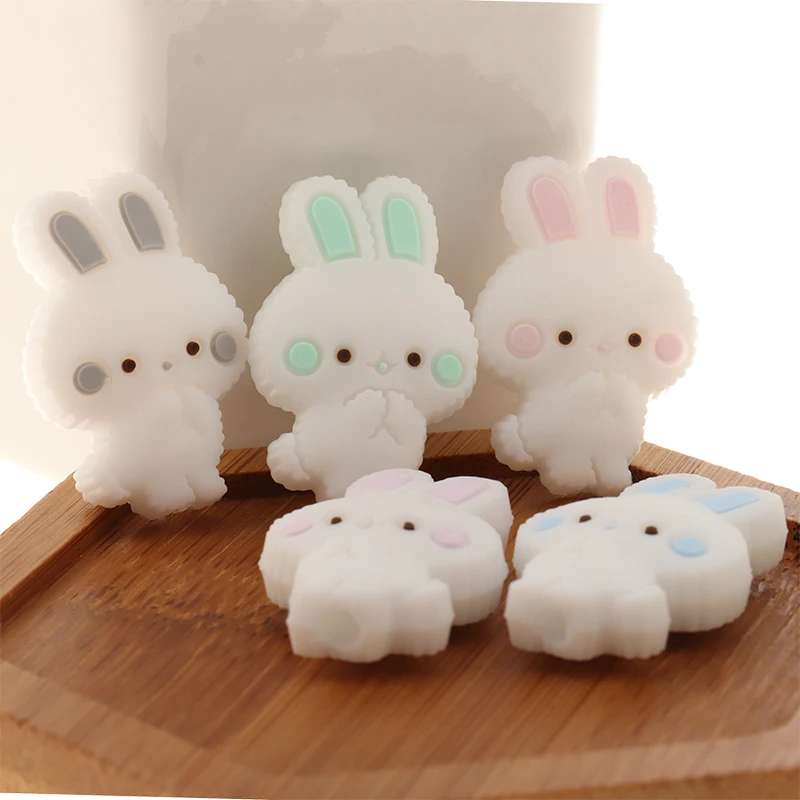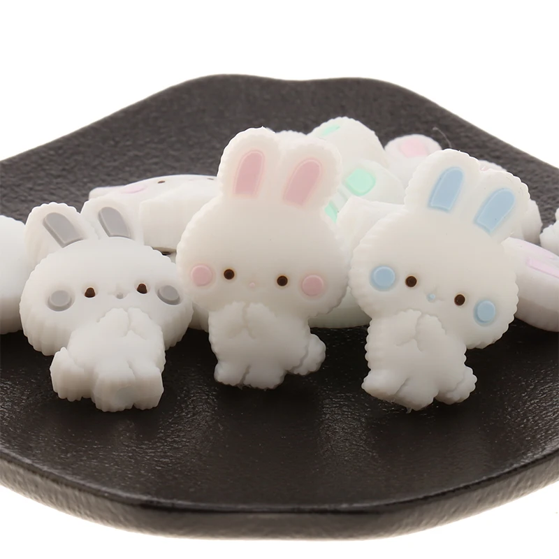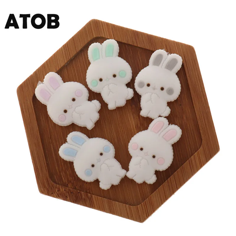 ATOB 20 шт Кролик силиконовые бусины BPA бесплатно милый кролик ребенок прорезыватель игрушки пищевого силикона ребенка прорезыватель ожерелье кулон
