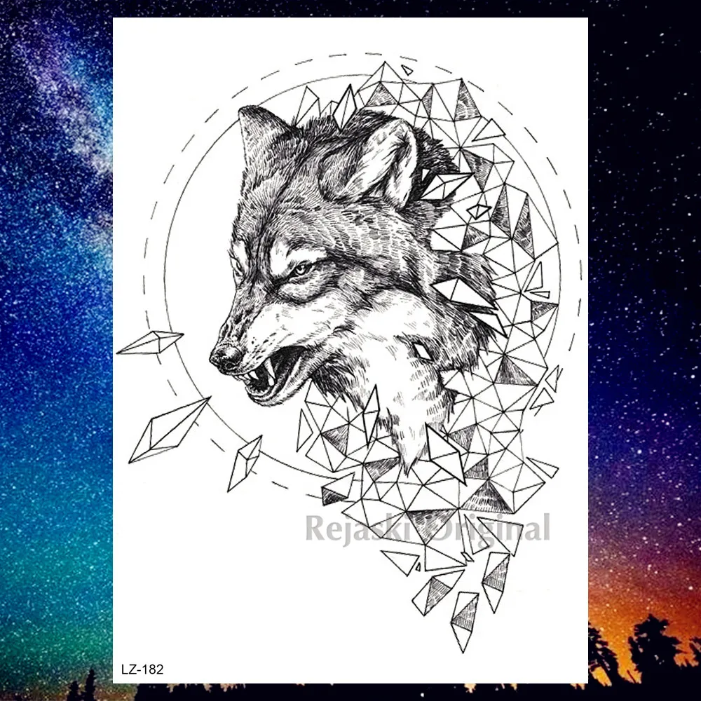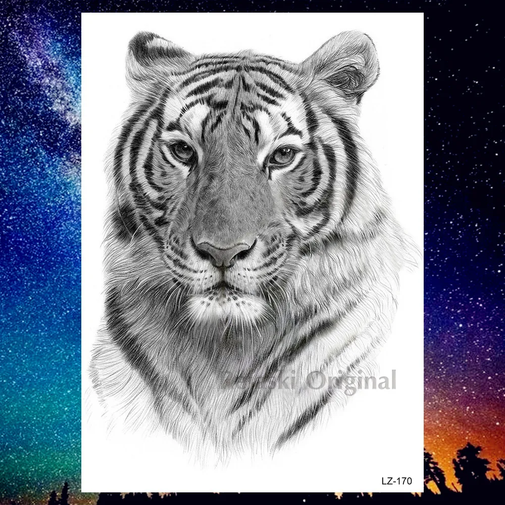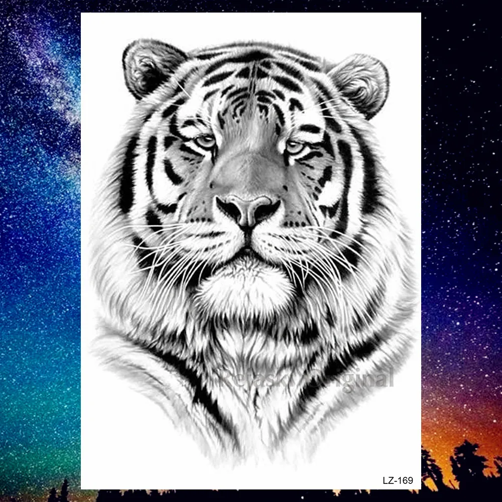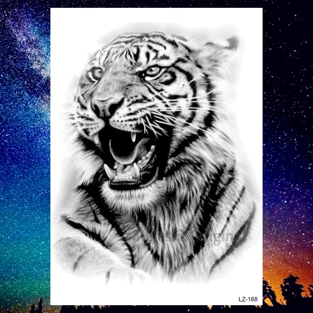 Черный Тигр Временные татуировки стикер реалистичные поддельные геометрические цветы татуировки с волком для женщин мужской боди-арт руки татуировки для вечерние