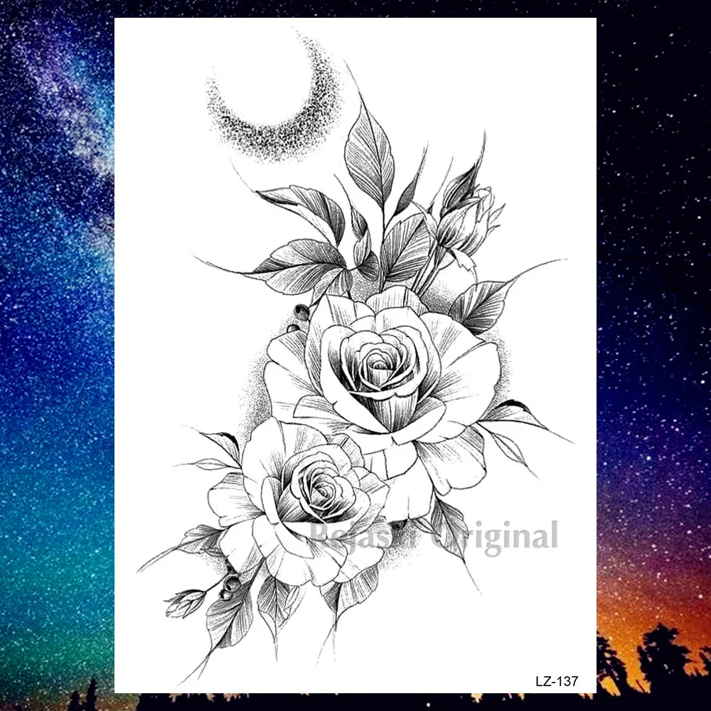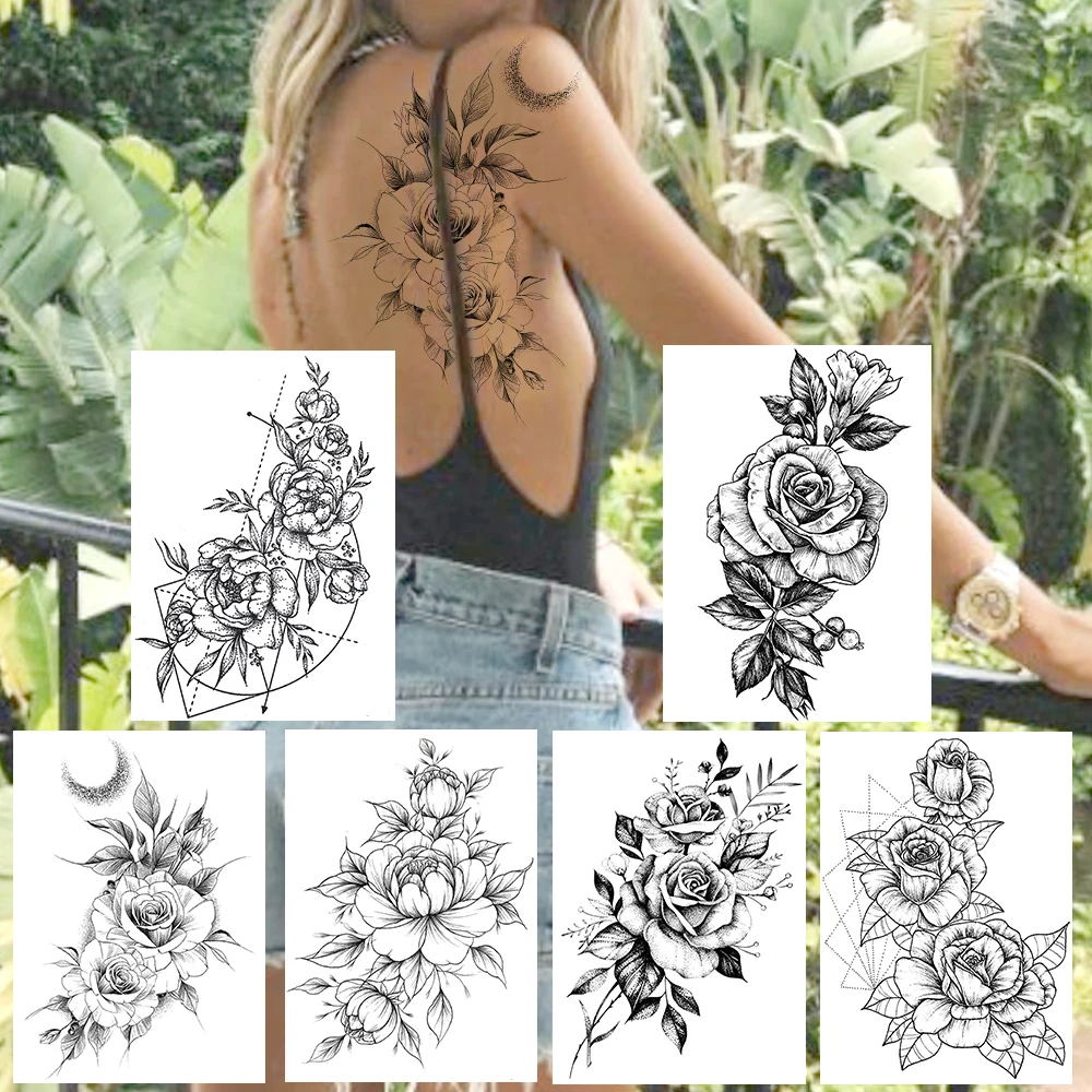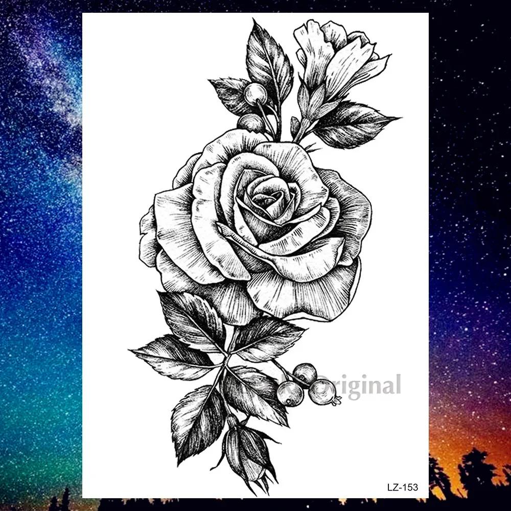 Временные водостойкие татуировки сделай сам в виде Розы, искусственные татуировки, черных цветов, женская мода, боди-арт, тату на руку для взрослых, праздничное шоу