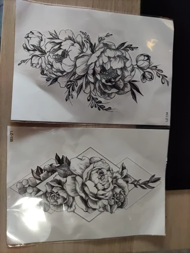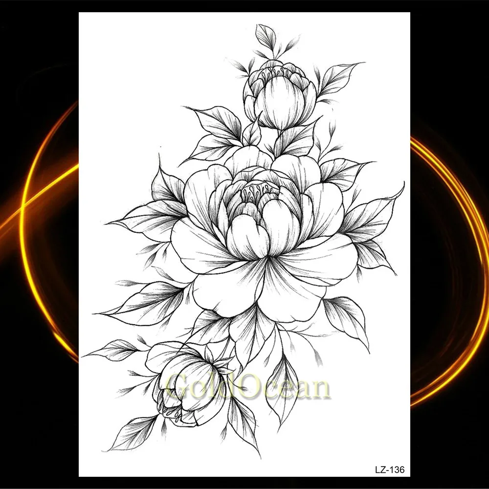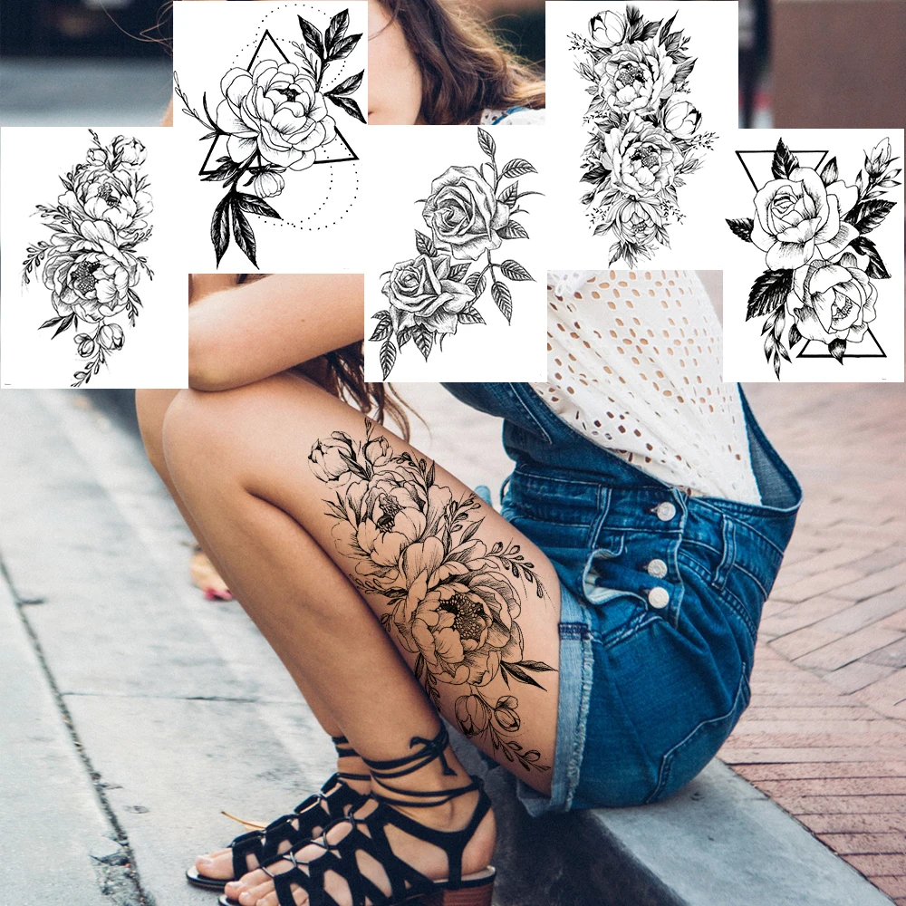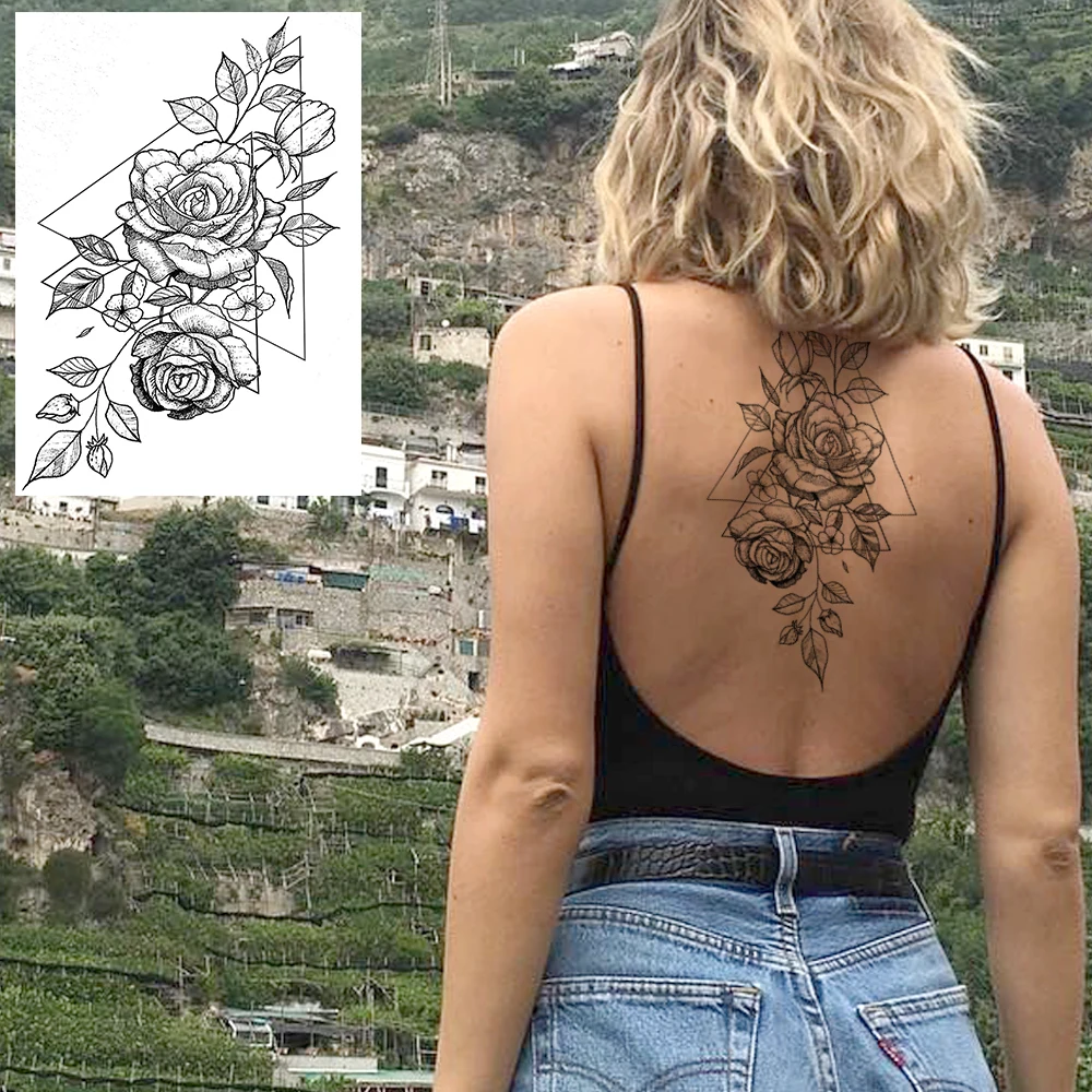 Геометрические цветы, Временные татуировки, наклейки, реалистичные поддельные водостойкие татуировки с черными розами для женщин, девочек, боди-арт, руки и ноги татуировки