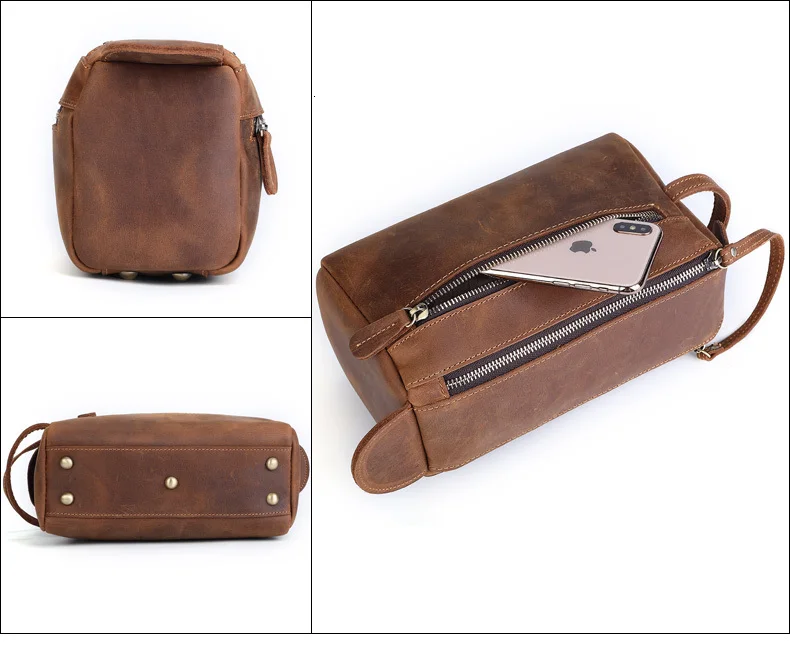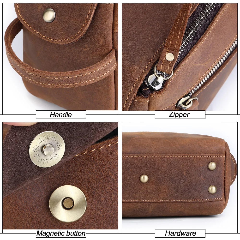 Дорожный косметичка GENODERN из натуральной кожи для мужчин, сумка из кожи Крейзи Хорс, винтажная мужская сумочка для косметики, саквояж для туалетных принадлежностей