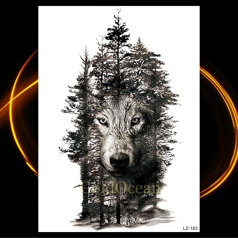 Татуировка Временная водостойкая Black Wolf, Реалистичная руки и ноги тату для мужчин и женщин с геометрическим воем, Койот, лес, боди-арт