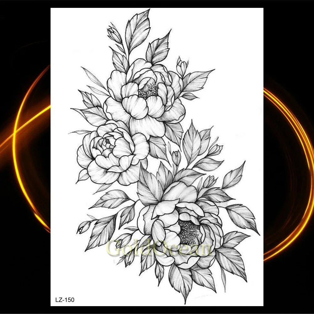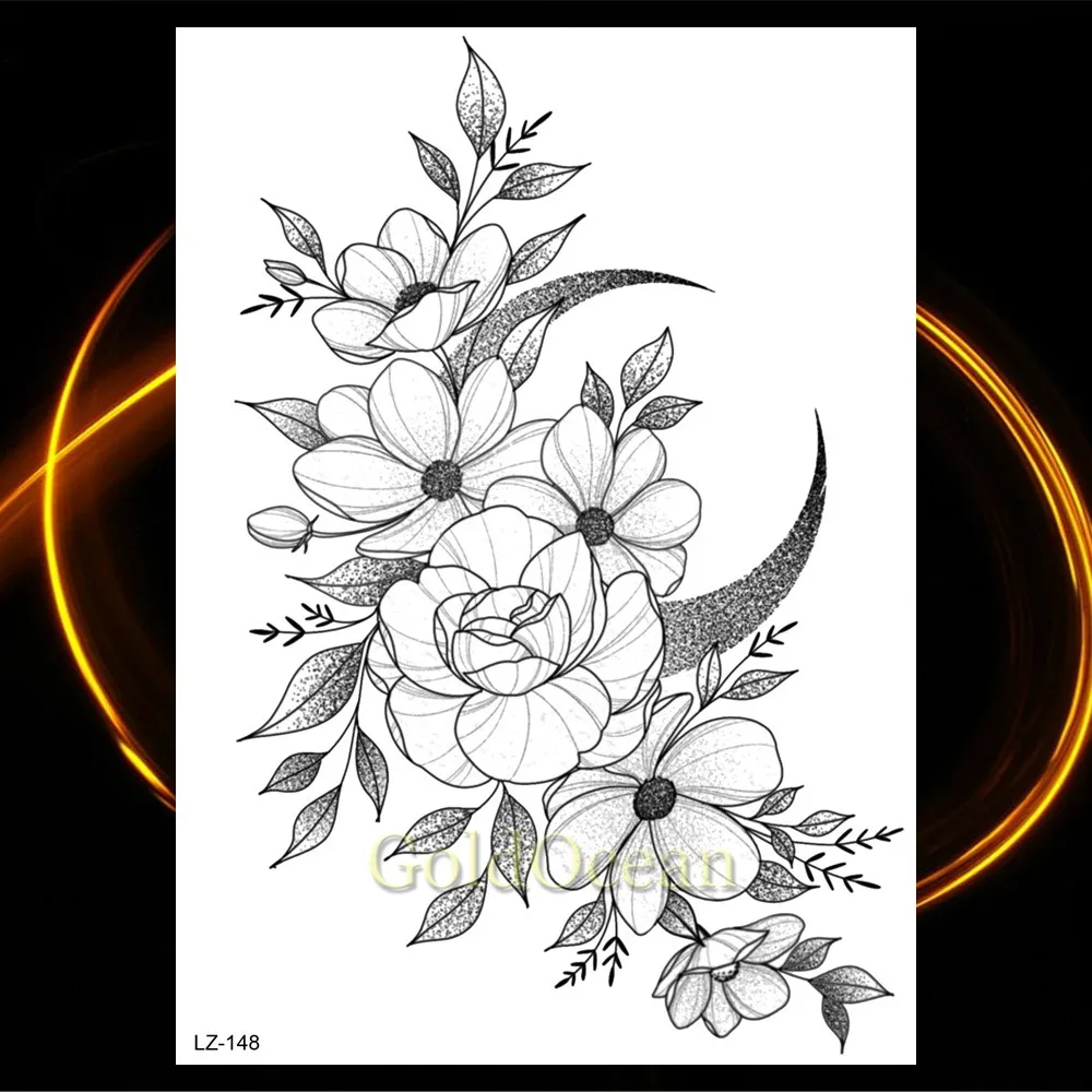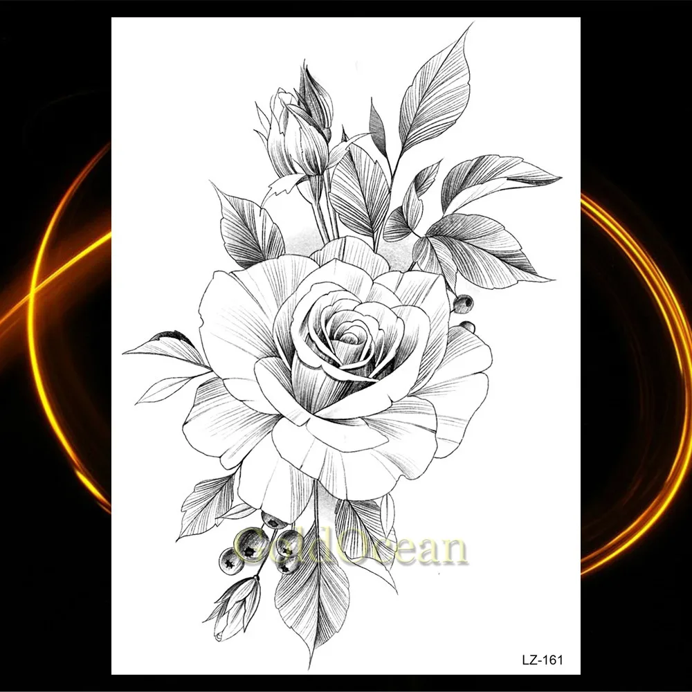 Творческие Цветочные Временные татуировки водостойкие черные геометрические розы планеты татуировки для женщин реалистичные поддельные боди-арт тату наклейки