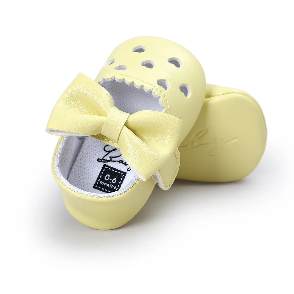 Туфли для новорожденных, мягкая нескользящая подошва, бант, наряд п...