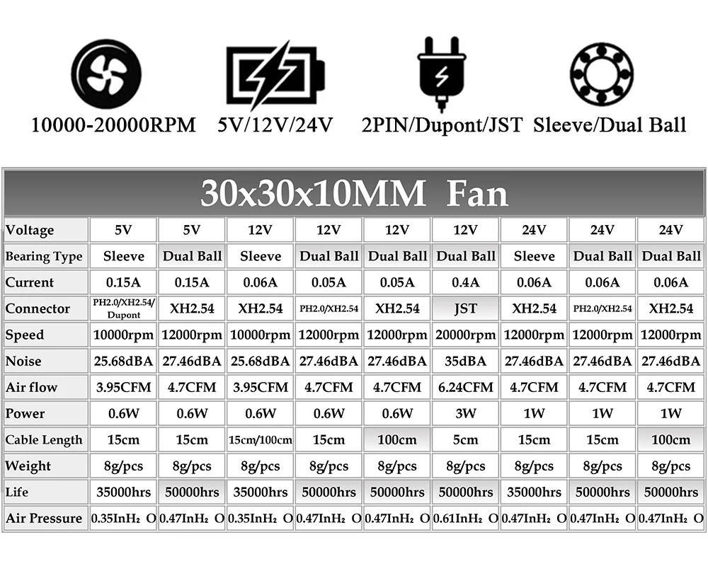2 шт. Gdstime DC 5 в 12 В 24 в 3 см 30x30x10 мм 30 мм с двумя шарикоподшипниками Вентилятор охлаждения 30 мм x 10 мм 3010 мини 3D принтер бесщеточный кулер вентилятор