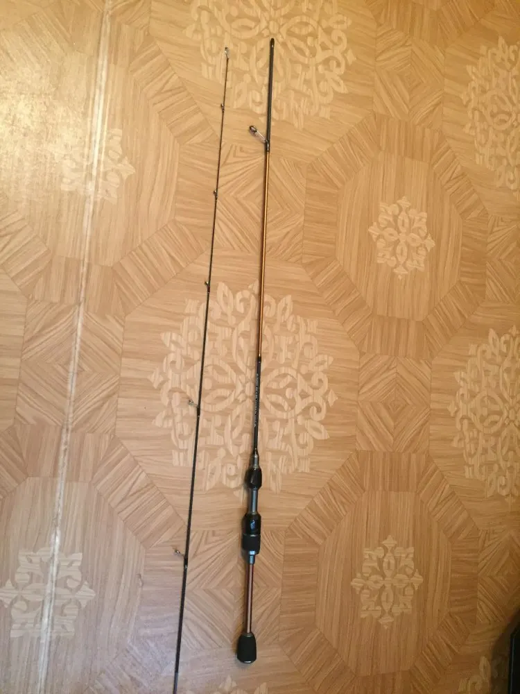 Кольца кривоваты, кончики тоже. Хлыстики очень мягкие. Дизайн впечатляет, выглядит очень стильно. Но рукоятка состоит из множества железных деталей, что добавляет ей нехилый вес. Первое от рукояти кольцо лучше заменить на большего диаметра, ну и второе можно (я буду менять). Интересно что хлыстик вставляется в комель а не наоборот, и чисто теоретически, можно вставить любой подходящий хлыст. В целом очень хорошо за такую цену. Можно даже адекватно мормышить я думаю.
