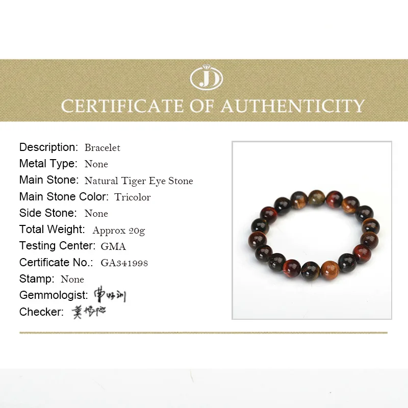JD 8-16 мм Золотой Цвет Тигр глаз камень бусины браслет китайские т...