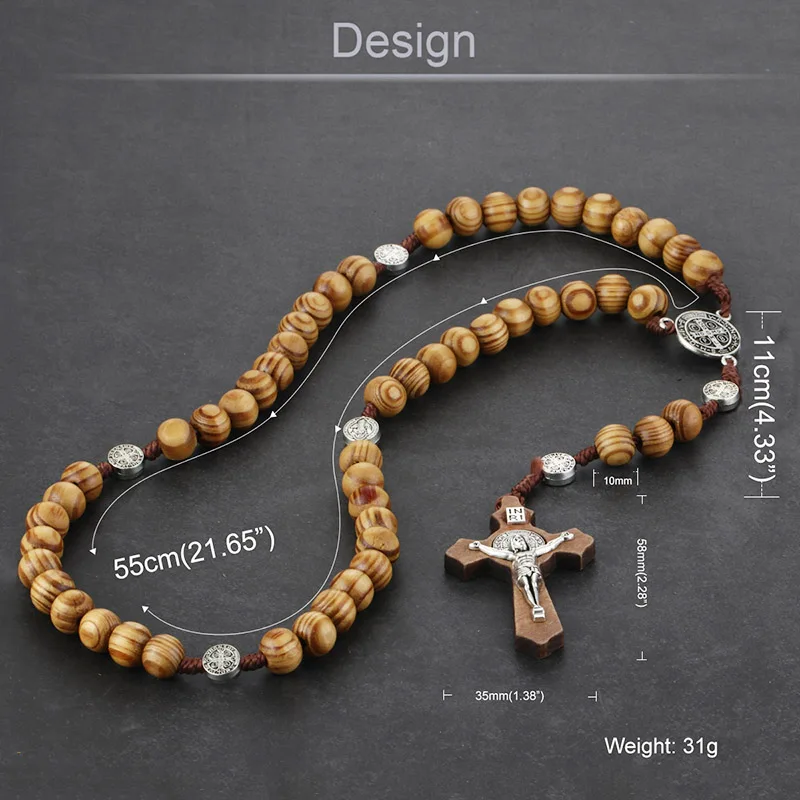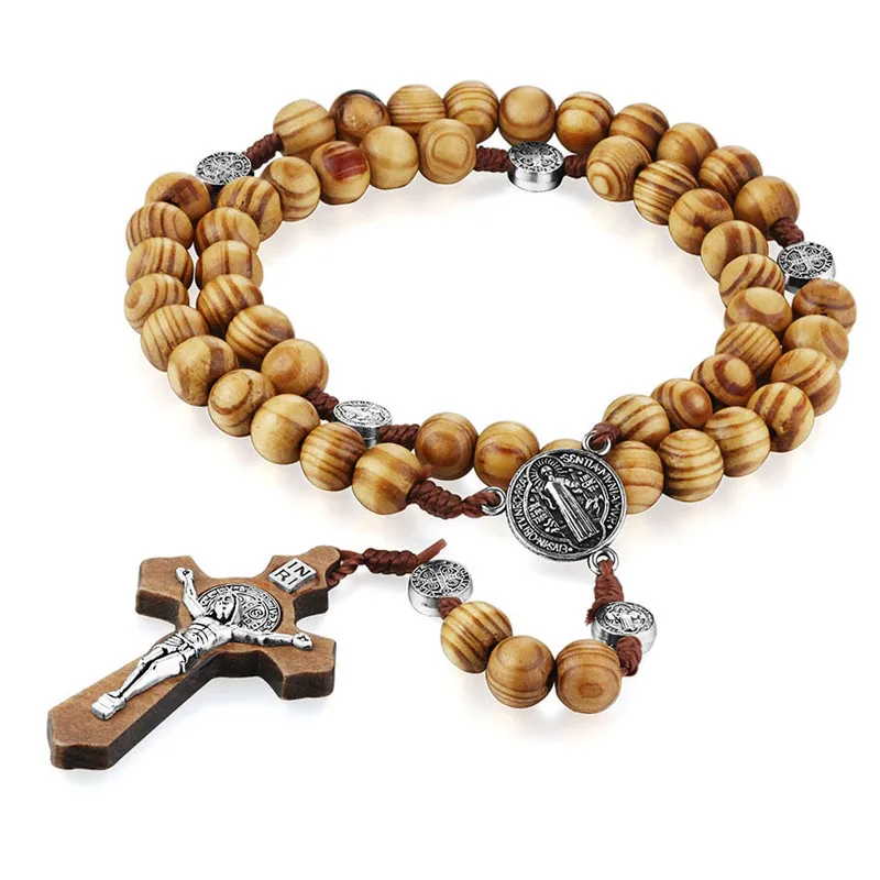 Ожерелье унисекс, деревянное, с подвеской в виде креста