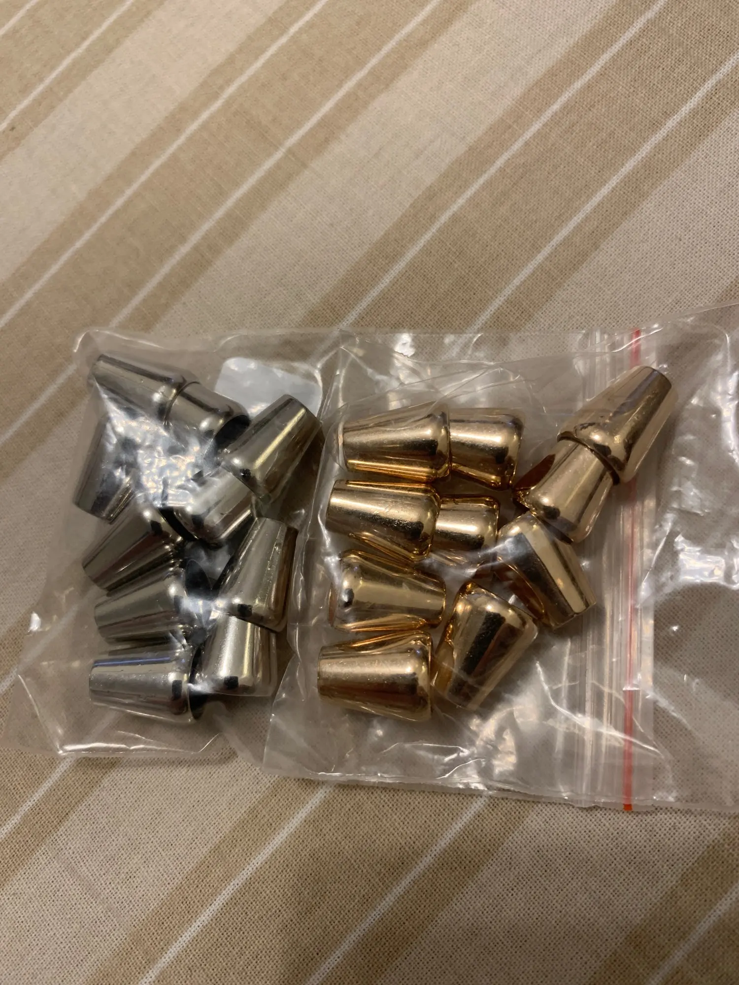 До Ростова 1,5 мес. Положили в почтовый ящик. Качество хорошее, но маловаты для меня. Предыдущие были больше, но у них не было золотых, пришлось тут заказать. (см. последнее фото для сравнения). Но посмотрим, может получится толстый шнурок продеть.
