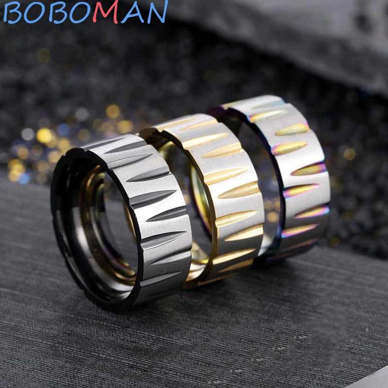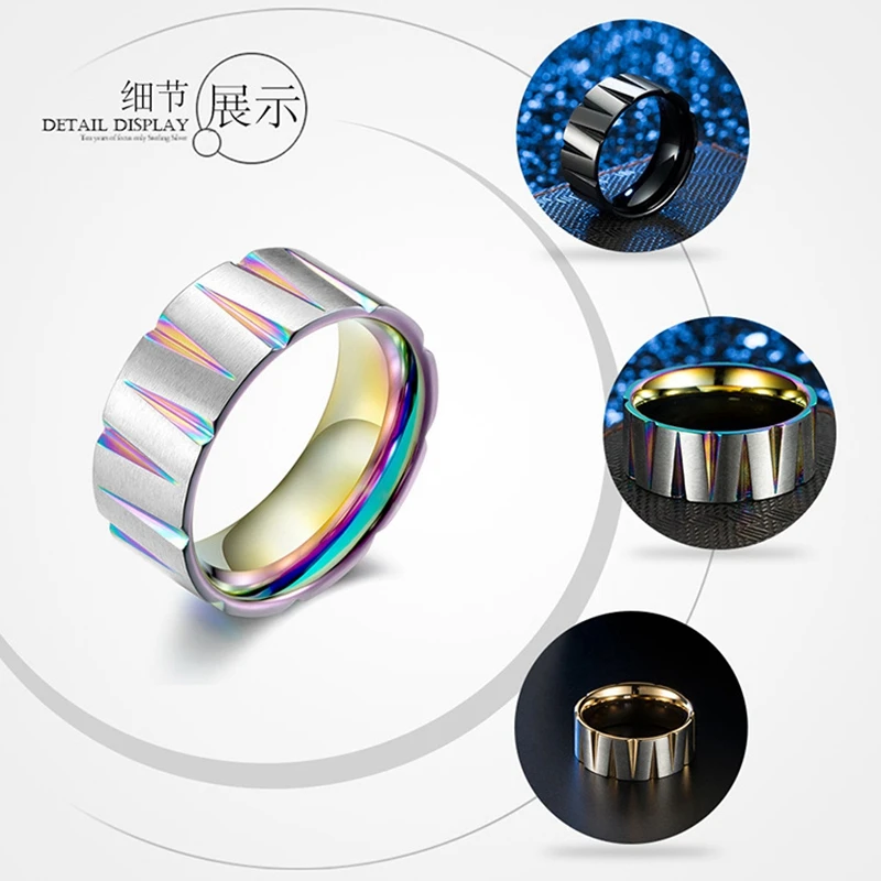 Мужское кольцо из матового титана Grooves8mm, многоцветное кольцо черного и золотого цвета из нержавеющей стали, ширина 8 мм