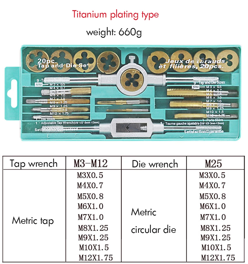 Набор метчиков и плашек, 20 шт., инструменты для нарезания резьбы, ...