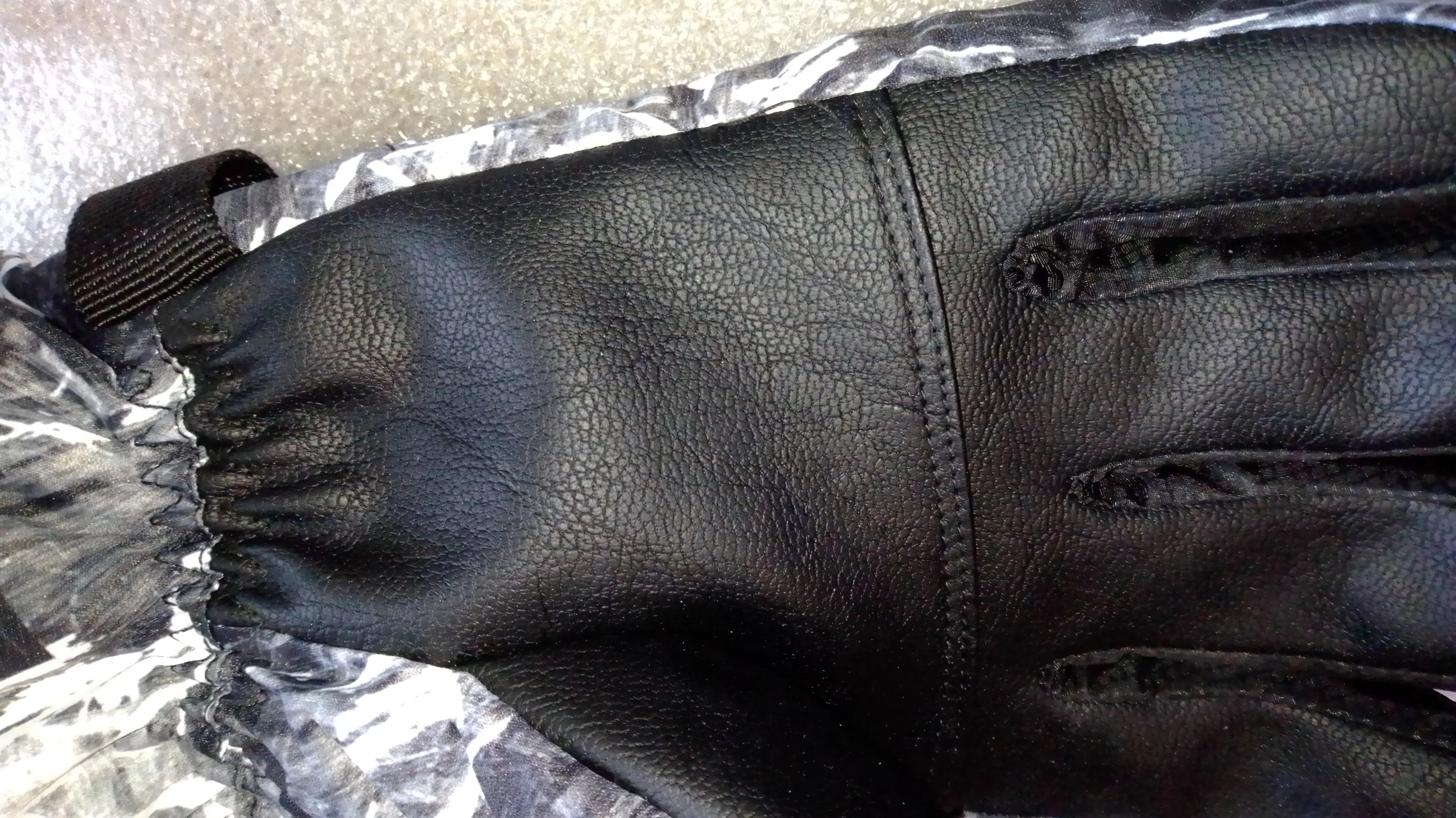 отличные перчатки, плотные, внутри рыбий мех, на ладонях кожа дерьмонтина. не хватает тельников и скрепляются скобкой а не фастексом, неудобно на морозе их разделять. качество отличное. еще смутила белая ткань между пальцами-уделается моментально.