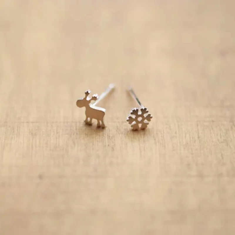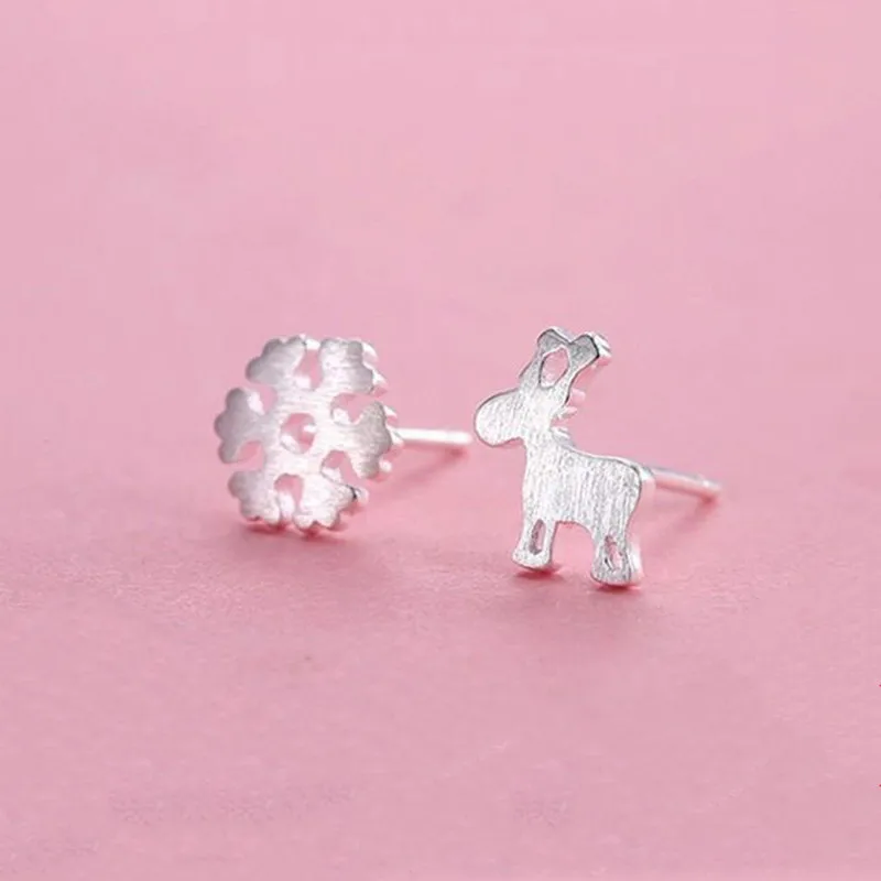 Модные серьги из стерлингового серебра 925 пробы, рождественские серьги в виде лося и снежинки, популярные подарочные серебряные серьги для девочек, ювелирные изделия для женщин