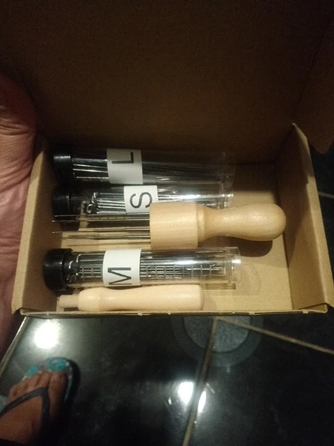 Очень хорошее все. Мама была рада. Не только Деревянный инструмент имеет винт, скрученный и плотно закрывает, когда кладет иглы.