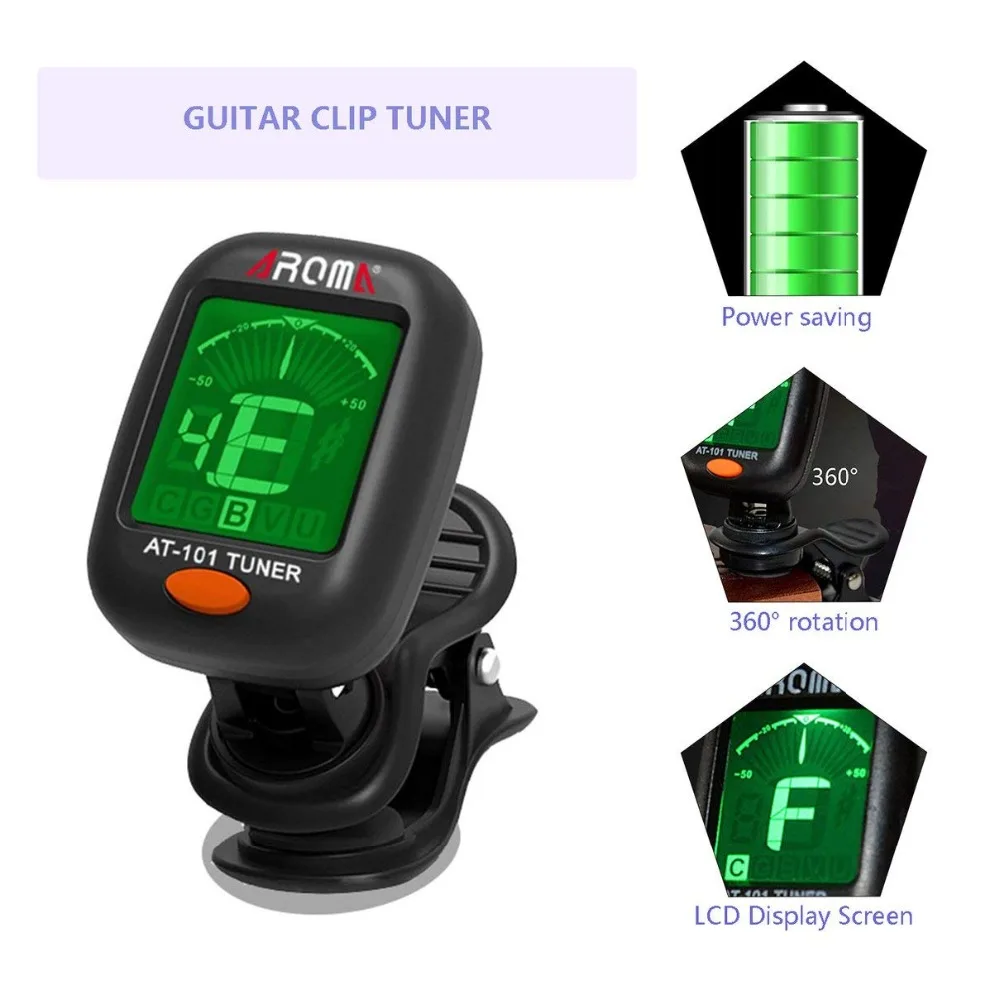 Тюнер для гитары AROMA AT-01A101, складной вращающийся тюнер с зажимом, высокочувствительный Для басов, укулеле, хроматические аксессуары для гитары