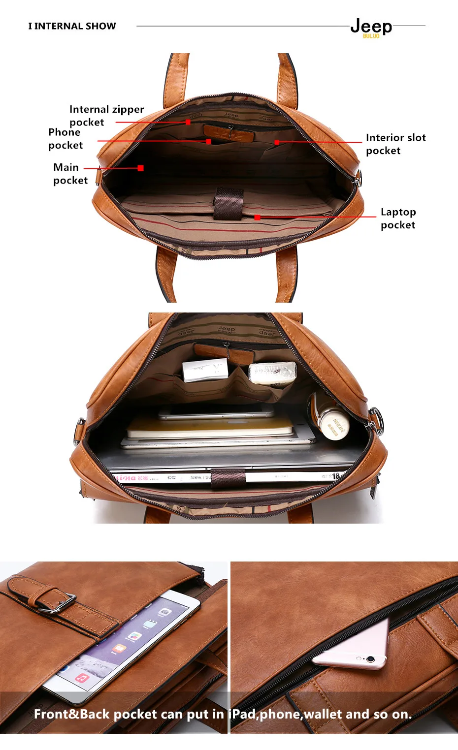 JEEP BULUO мужской портфель, сумки, деловой чехол, офисная сумка, сплит кожа, мужская сумка-мессенджер на плечо, 14 дюймов, сумка для ноутбука
