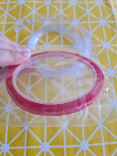 Как в описании. Лента из ПВХ и клейкая Полоса из фольги разделены по размеру. Клейкая лента хорошо держится.