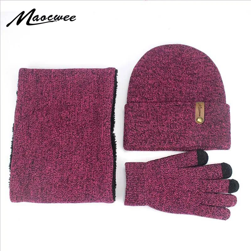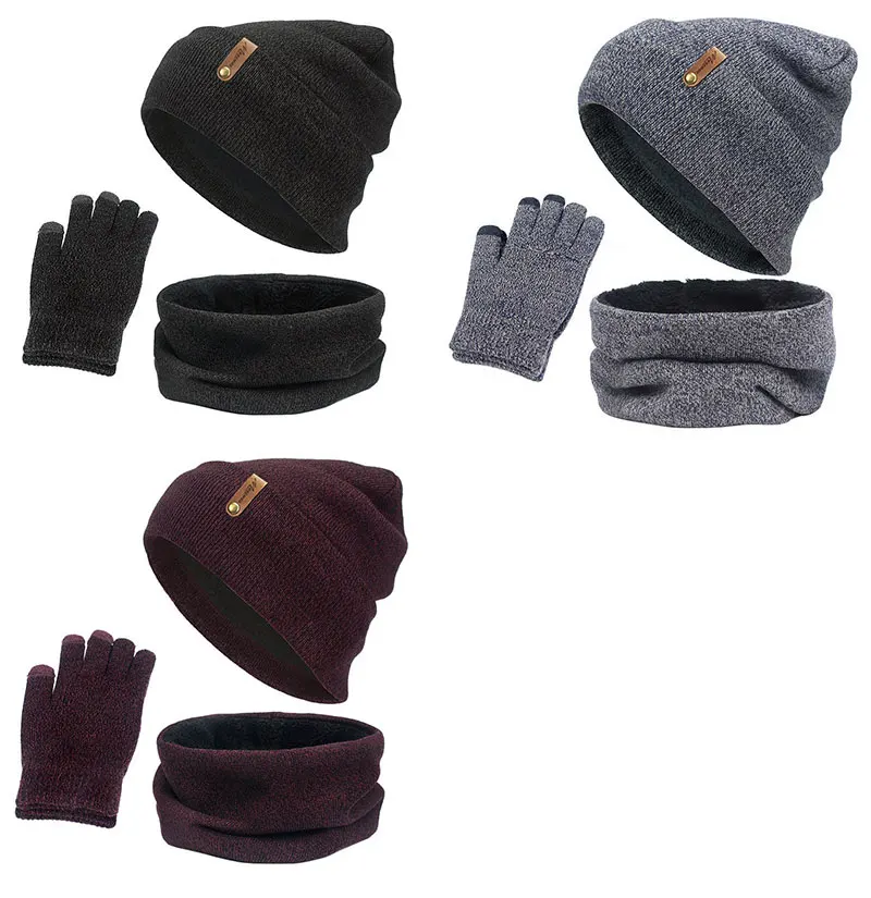 Зимние теплые бини кольцо для шляпы Шарфы полный палец перчатки Набор для женщин и мужчин мягкий шейный шарф Балаклава капот бини шапки перчатки
