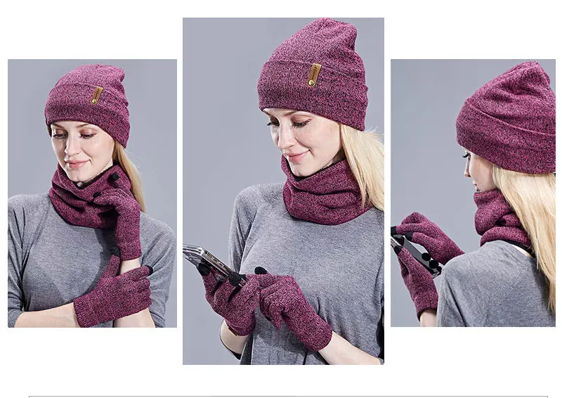 Комплект из 3 предметов, женские вязаные перчатки, зимние теплые пл...