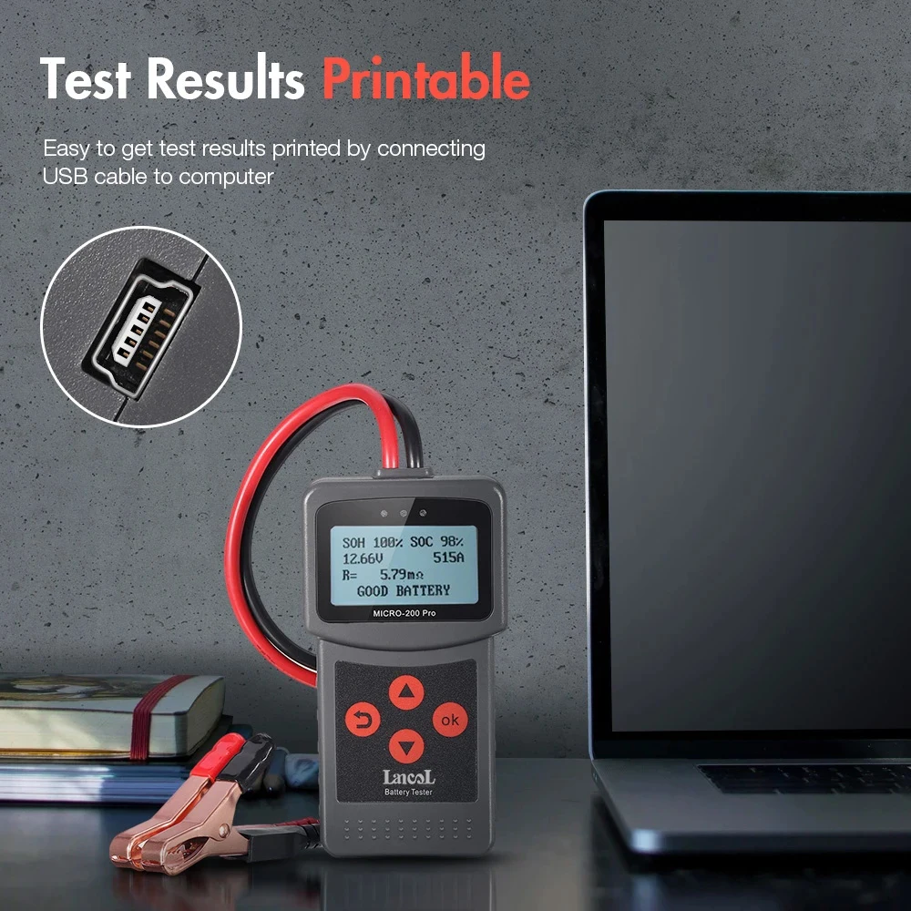 Анализатор свинцово-кислотных аккумуляторов Lancol Micro200 Pro, 12 В, 40-тест на проворот коленвала ОСА
