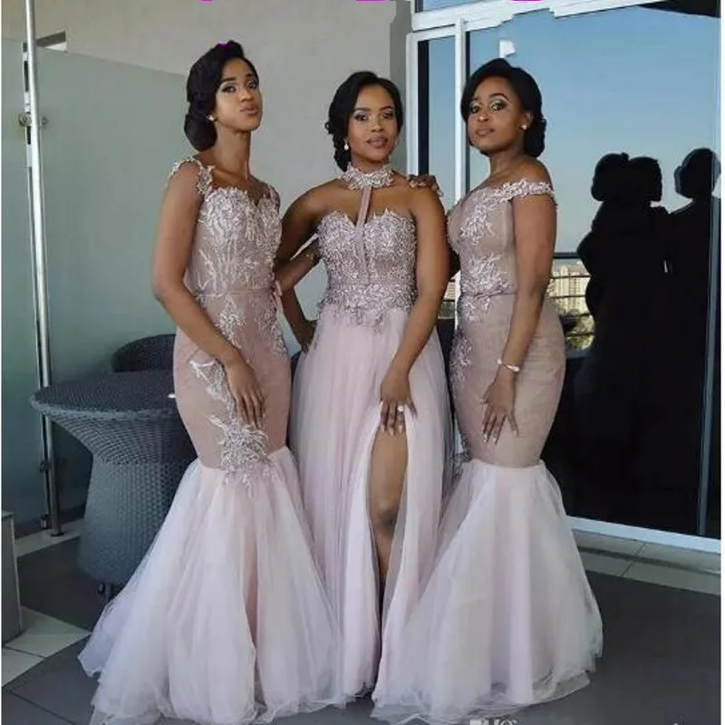 Африканские платья подружки невесты, длинные платья разных стилей с аппликацией и открытыми плечами, свадебная одежда для гостей, платья подружки невесты с разрезом