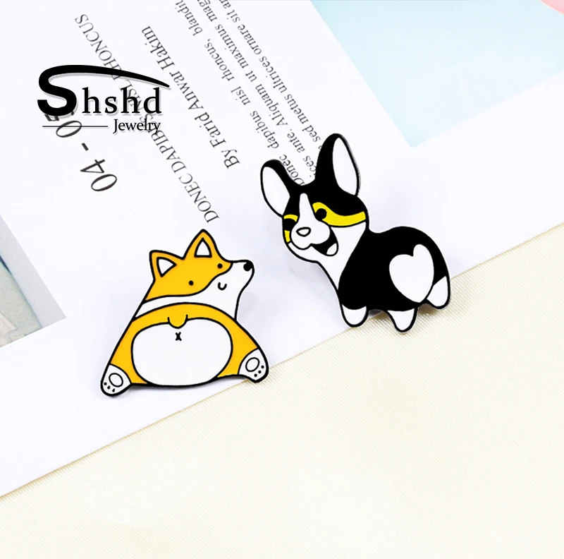 Shshd Милая брошь корги, эмалированная заколка для собачки с героями мультфильмов, шапка для щенка, куртки, нагрудная булавка, сумка, высокое качество, металлические значки, Детская Ювелирная коллекция подарков