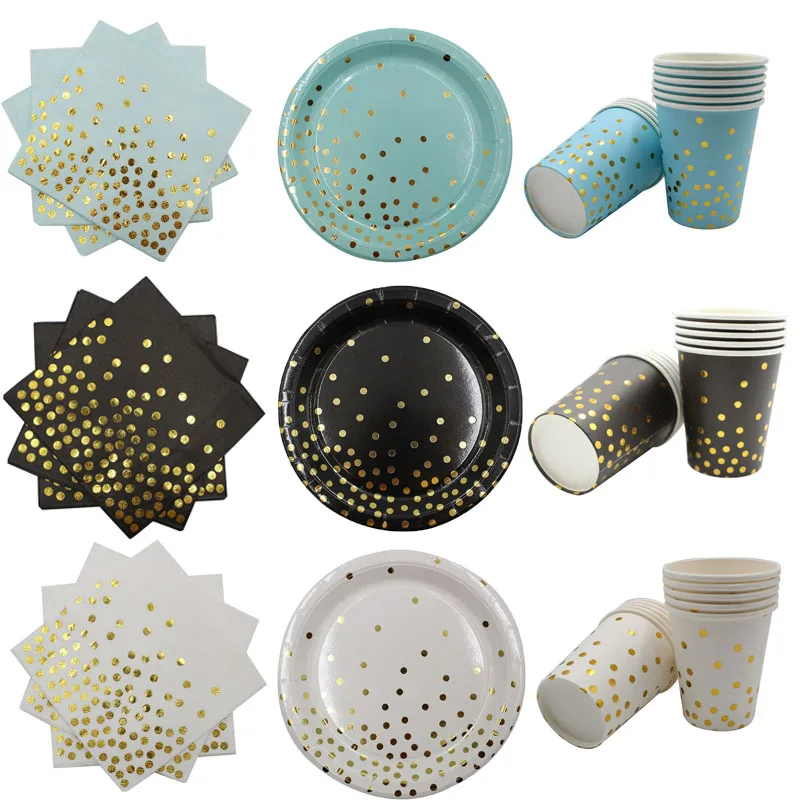 Золотые вечерние набор одноразовой посуды бумажные стаканчики и тар...