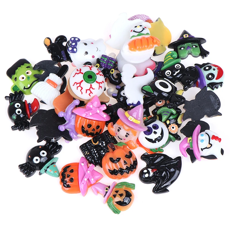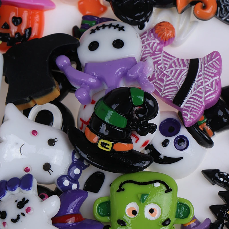 10 шт. смешанные DIY Хэллоуин серия резиновые подвески с плоским основанием призрак тыква кабошон случайный