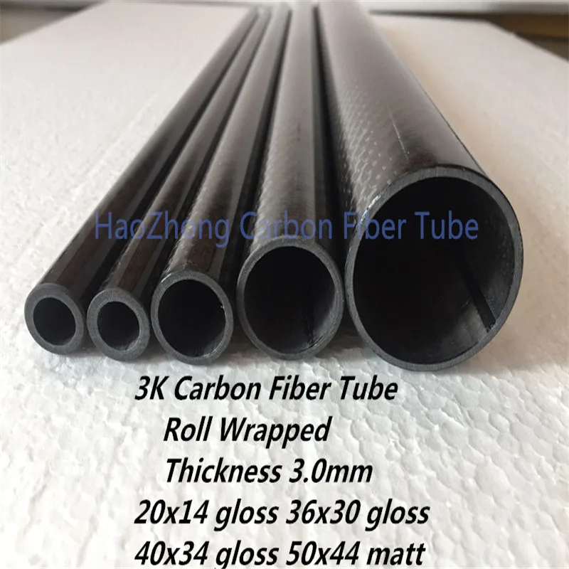 Трубка из углеродного волокна 3K толщиной 3,0 мм, рулон обернутый OD 20 36 40 50 мм x 1000 мм, трубка для крылапосадочное шасси для многоосевого самолета