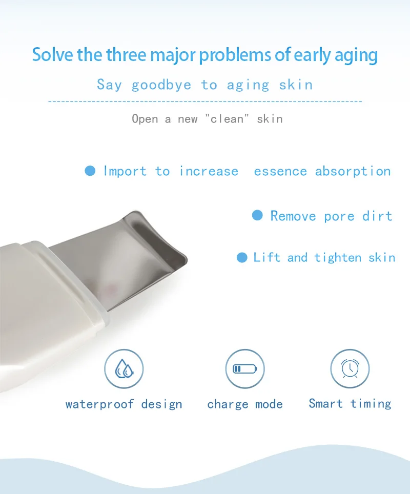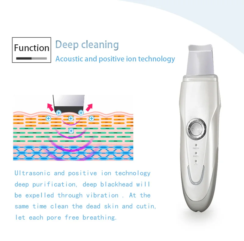 1. Ультразвуковая + положительная ионная двойная очисткаУльтразвуковая и положительная ионная технология глубокой очистки, глубокая черная головка будет выслана через вибрацию. В то же время очистите омертвевшую кожу и кутин, дайте каждой поре дышать.2. Ультразвуковое + отрицательное ионное двойное введение эффектаГлубокое введение ультразвуковой и анионной технологии может подтолкнуть эссенцию средств по уходу за кожей к нижней части кожи и питать ее, делая кожу влажной и нежной.3. EMS микро электрический токEMS микро-ток стимулирует движение лицевых мышц и уплотняет кожу. В то же время разбудите спящую коллагеновую ткань, омолаживайте жизненную силу кожи и блеск.