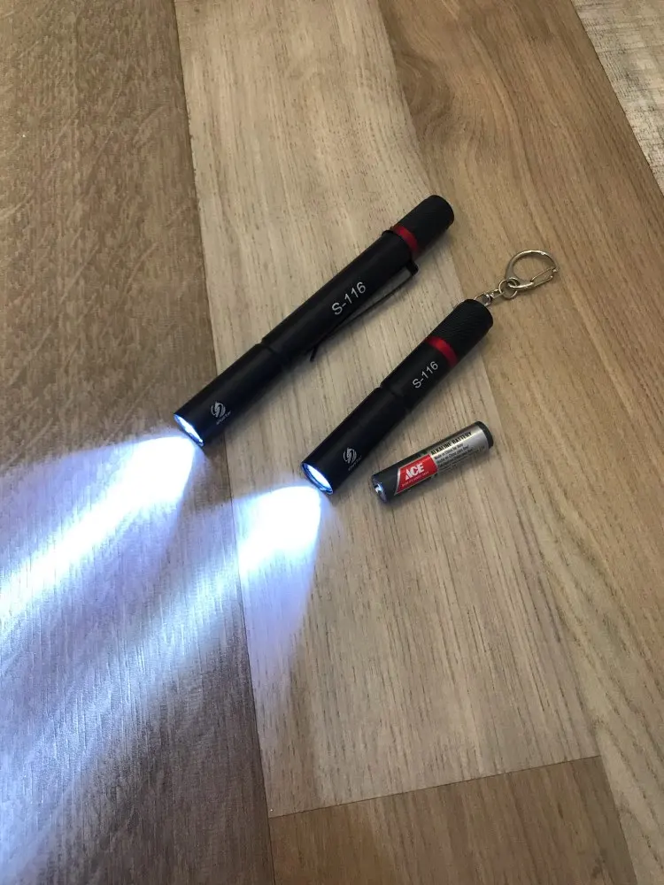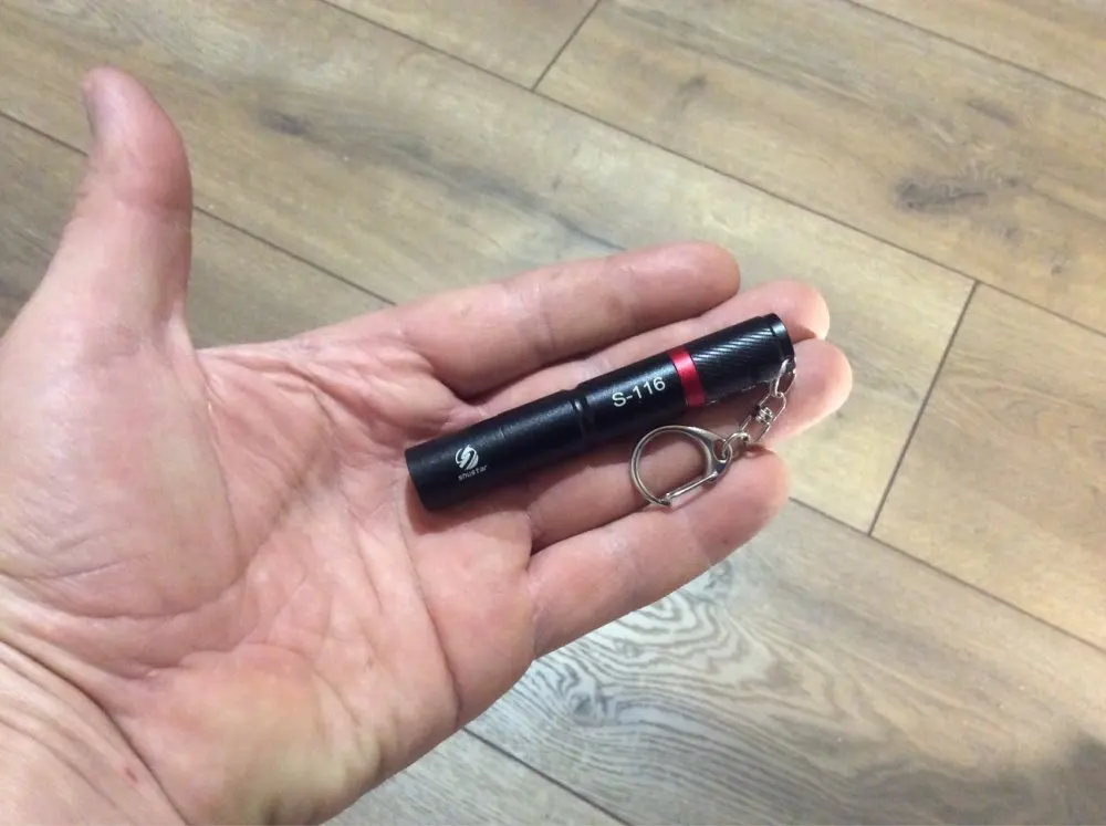 Маленький удобный фонарик с батарейкой формата ААА. Отлично посещается на ключи в кармане. Свет достаточно яркий для такого малыша. Удобное взаимозаменяема батареек между сигнализацией от машины и фонариком делают его ещё практичнее. Особенно порадовала доставка. Это абсолютный рекорд. 8 дней. Да ещё и в новогодние праздники. просто шикарно