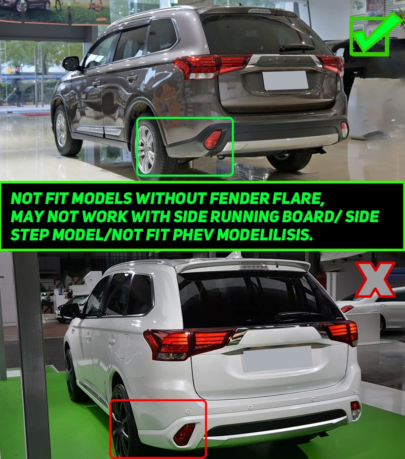 Фитинг: для June.2015/2016-2021 Mitsubishi Outlander с обвайзеромНе подходит для моделей без вспышки fender, аэродинамического комплекта, боковых юбок, комплектов для тела и т. д./может не работать с боковой беговой доской/боковой шаговой моделью/не подходит для модели PHEV