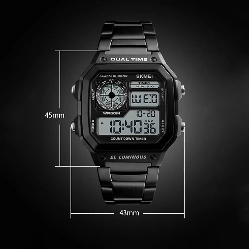 10 шт. SKMEI 1335 цифровые спортивные часы из нержавеющей стали мужские водонепроницаемые часы с хронографом и квадратным Циферблатом часы мужские Бесплатная доставка