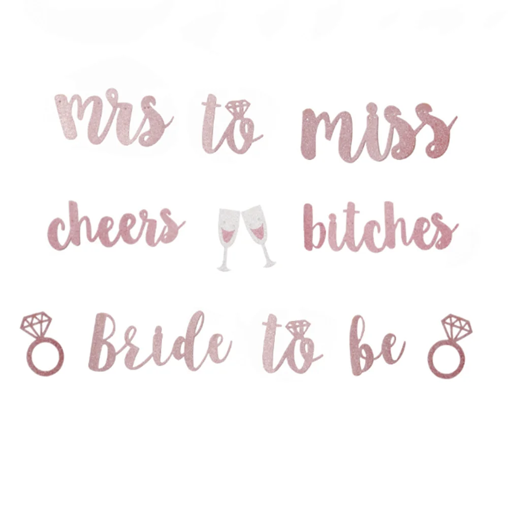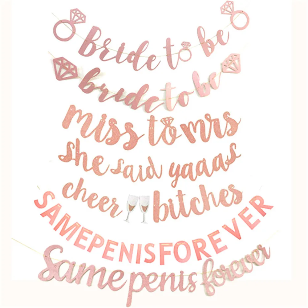DIY Розовые блестящие бумажные флаги, свадебная гирлянда для невесты, флажки, баннеры, украшение для девичника, девичника