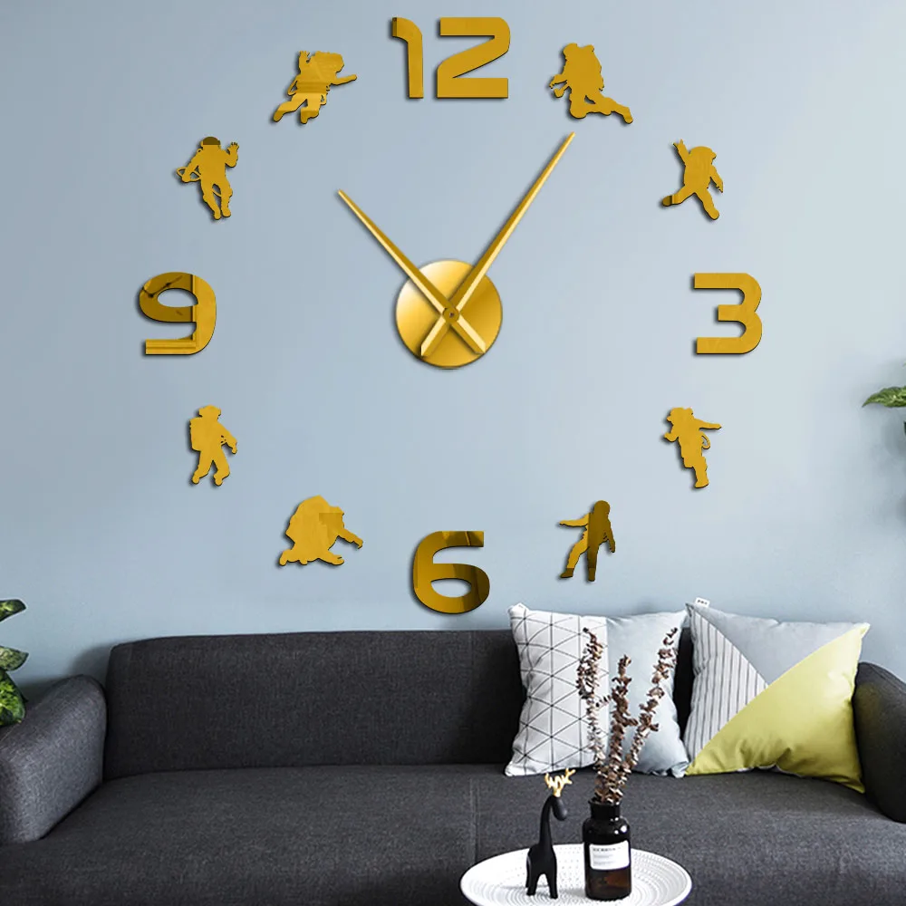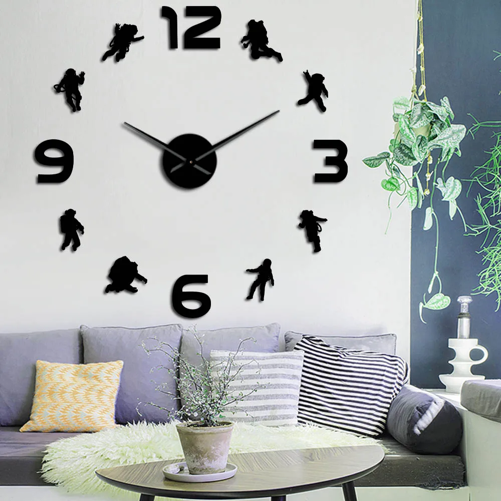 Настенные часы с зеркальной поверхностью, большие современные украшения сделай сам в стиле астронавт, для детской комнаты, без рамки, украшение для дома