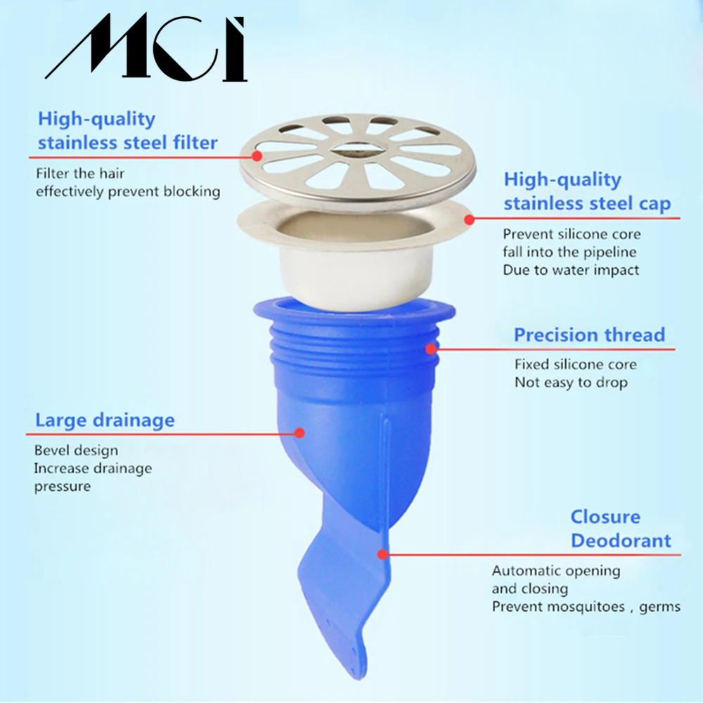Ситечко Mci для кухонной трубы в ванную комнату, слив канализации, защита от запаха, вредителей, аксессуары для слива пола, круглая крышка из нержавеющей стали