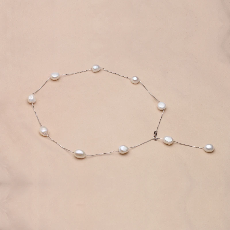 Цепочка из серебра 925 пробы, колье из натурального жемчуга для женщин, ожерелье из натуральных бусин, рождественские подарки