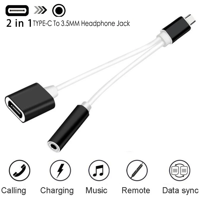 2 в 1 Type C до 3,5 мм зарядное устройство наушники аудио разъем USB C кабель портативный Type-C до 3,5 мм разъем адаптер для мобильный телефон