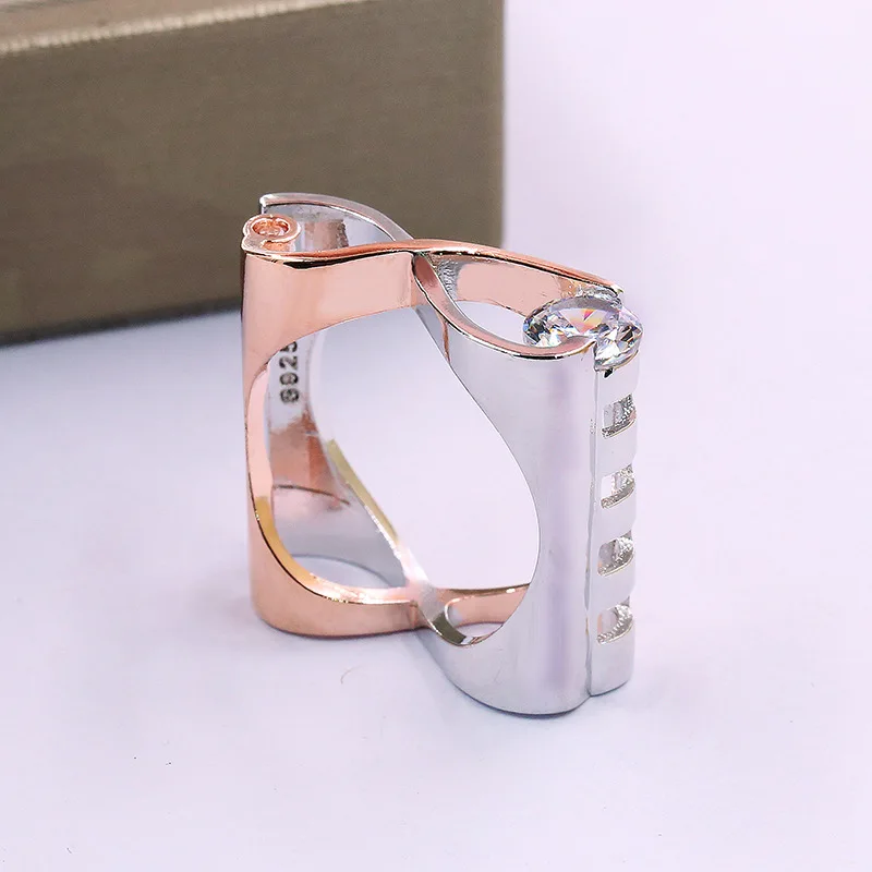 Двухцветное кольцо ed Love Infinity кольца для мужчин и женщин серебряного цвета розового золота с белым Цирконом геометрическое обещание обручальное кольцо