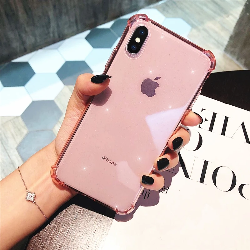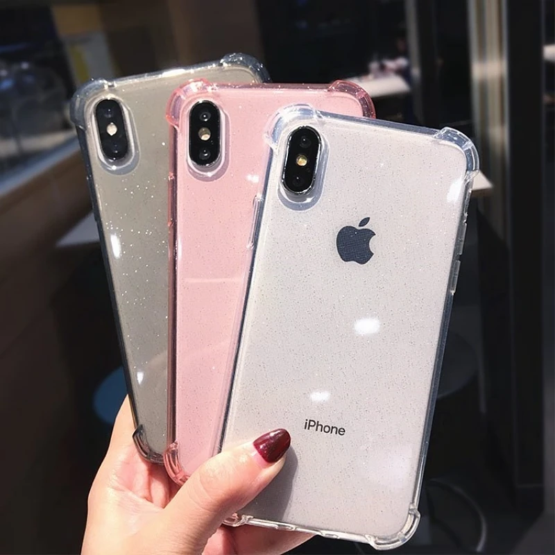 Блестящий противоударный бампер прозрачный силиконовый чехол для телефона
